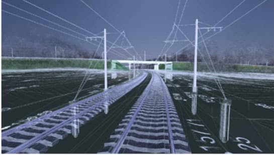 Figura 1. Modelo de alambres BIM de infraestructura ferroviaria.
