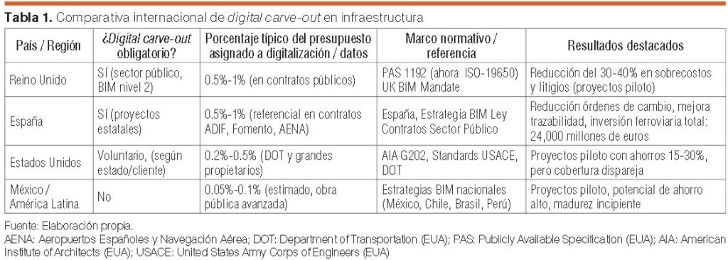 Tabla 1. Comparativa internacional de digital carve-out en infraestructura