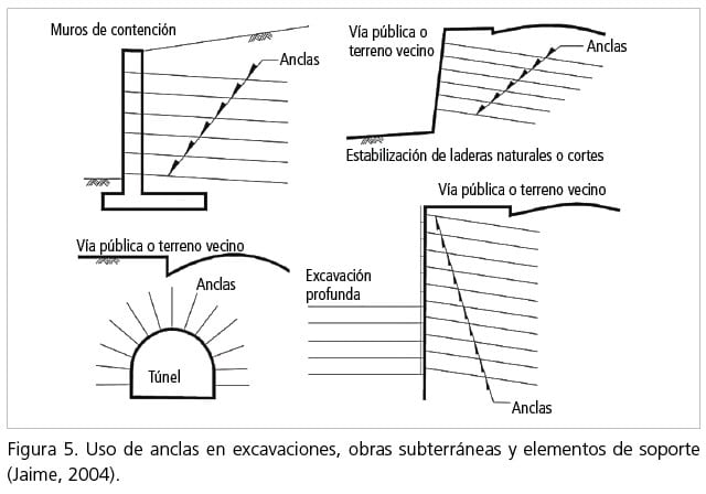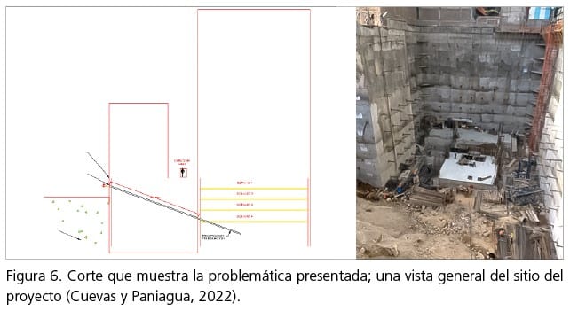 Este tema ha sido tratado anteriormente (Cuevas y Paniagua, 2022) y se ejemplifica en la figura 5. Un aspecto que conviene destacar es la profundidad de excavaciones que se estabilizan con este sistema, que alcanzan a la fecha hasta 54.5 m en la Ciudad de México. Los principales conflictos son: