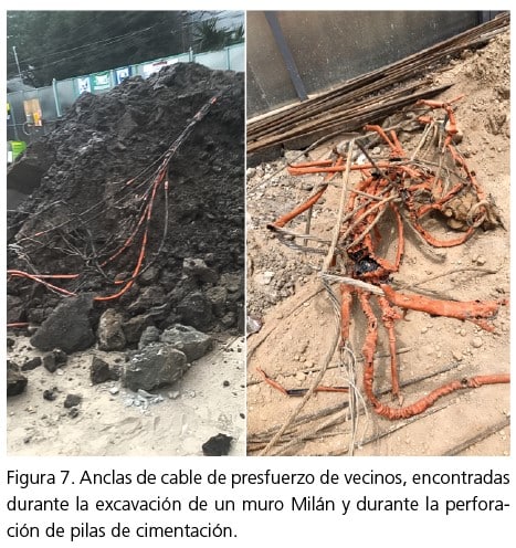 • Instalación de anclas sin la verificación de colindancias, lo que ha provocado la perforación de sótanos u otras instalaciones vecinas (figura 6).